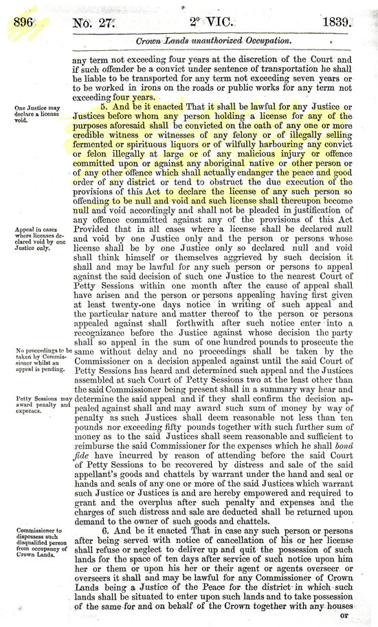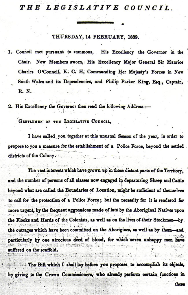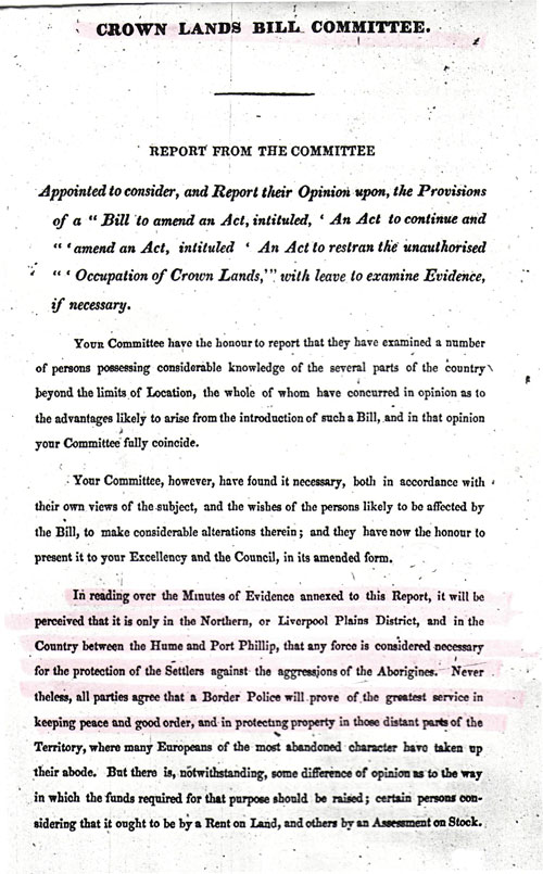 settlers and Aboriginal people. Copies of the Bill are also in the New South