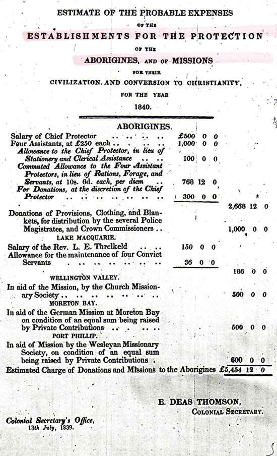 Sir George Gipps to Lord Glenelg "In my Despatch ... I detailed to your